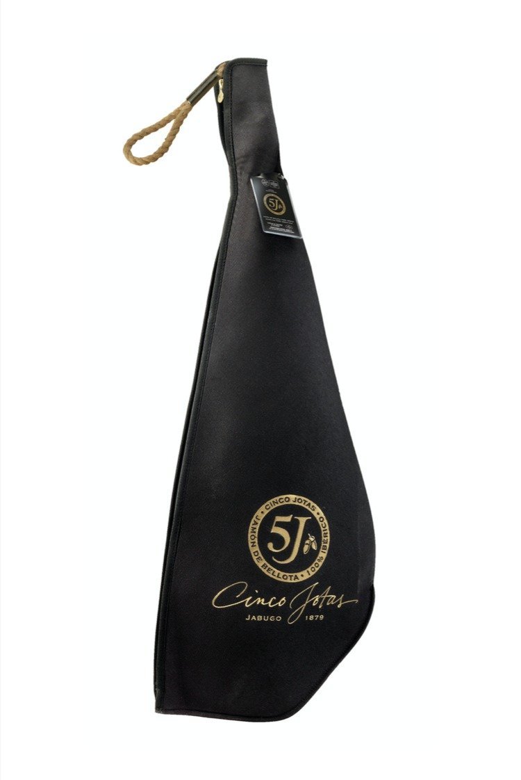 CINCO JOTAS | JAMÓN DE BELLOTA 100% IBÉRICO CON HUESO | PATA completa empacada al vacío en FUNDA de LUJO en neopreno, por un peso TOTAL de entre 6 y 7 kg.