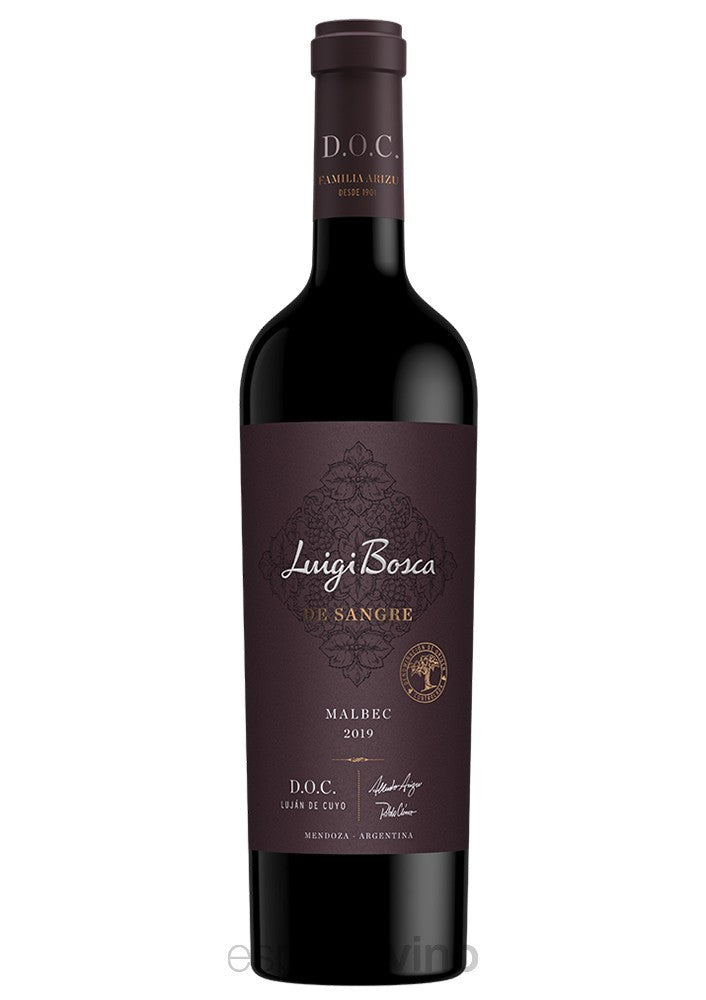 Luigi Bosca De Sangre - Malbec D.O.C es uno de los primeros vinos argentinos con Denominación de Origen. De color rojo violáceo profundo y brillante, sus aromas son equilibrados, con notas de frutas rojas y negras, y especias dulces. En boca es refrescante y voluptuoso, con taninos finos y delicados. De paladar franco y expresivo, con carácter y tipicidad, y un final profundo con suaves tonos ahumados de la crianza en barricas de roble. Es un gran exponente del varietal y de su terruño, con gran potencial de guarda.